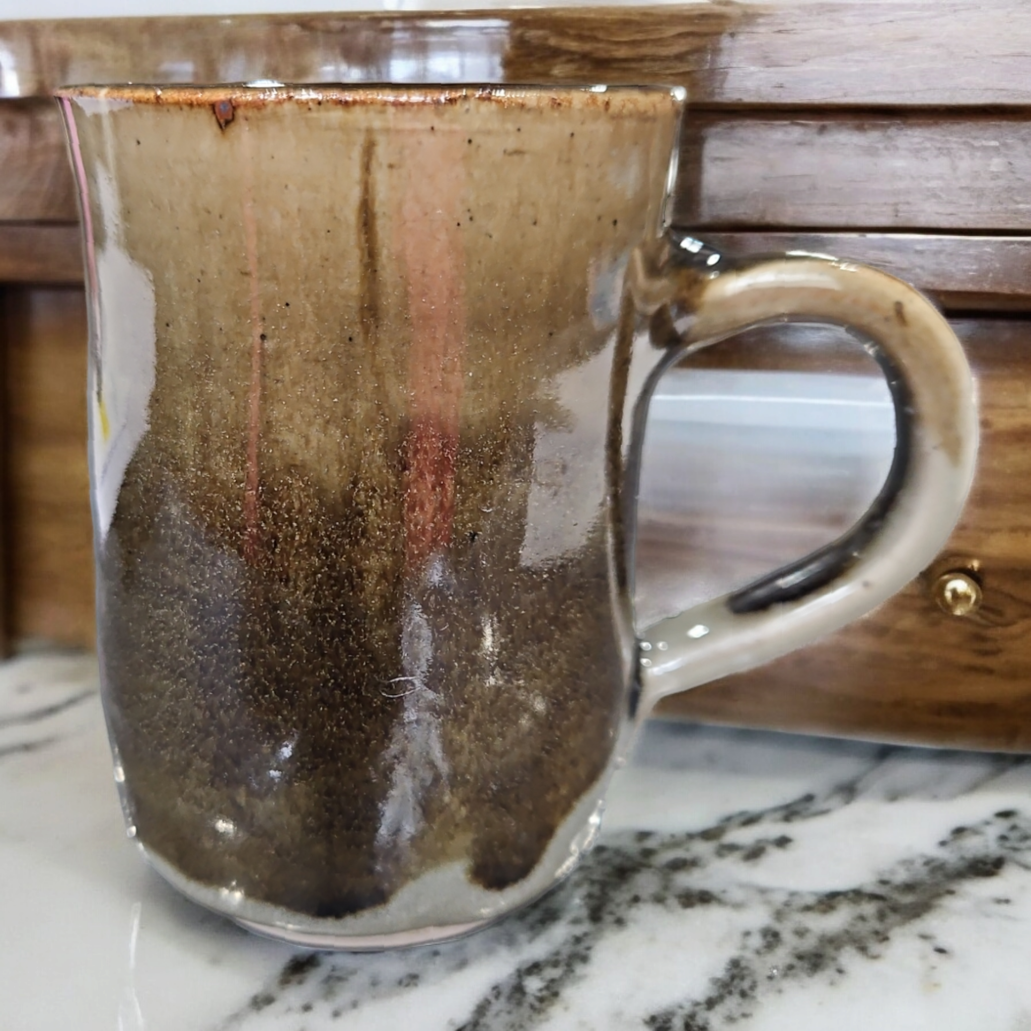 Regular price $5.00Sale price $5.00 Regular priceUnit price / perVessel: Mug w/ a handle Holds about 4-8 ounces of coffee, tea, etc. Wheel-thrown 2021 • Ceramic• Glossy finish• Microwave and dishwasher safe